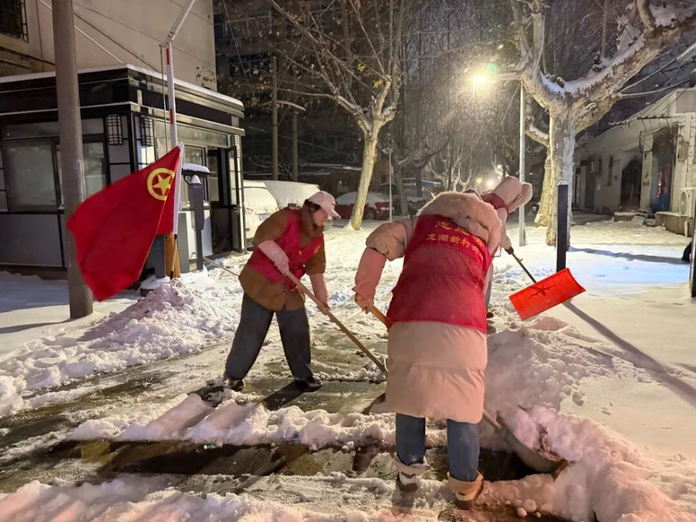 龙湖新村街道团工委、青年突击队、各社区团支部参与铲雪志愿活动。