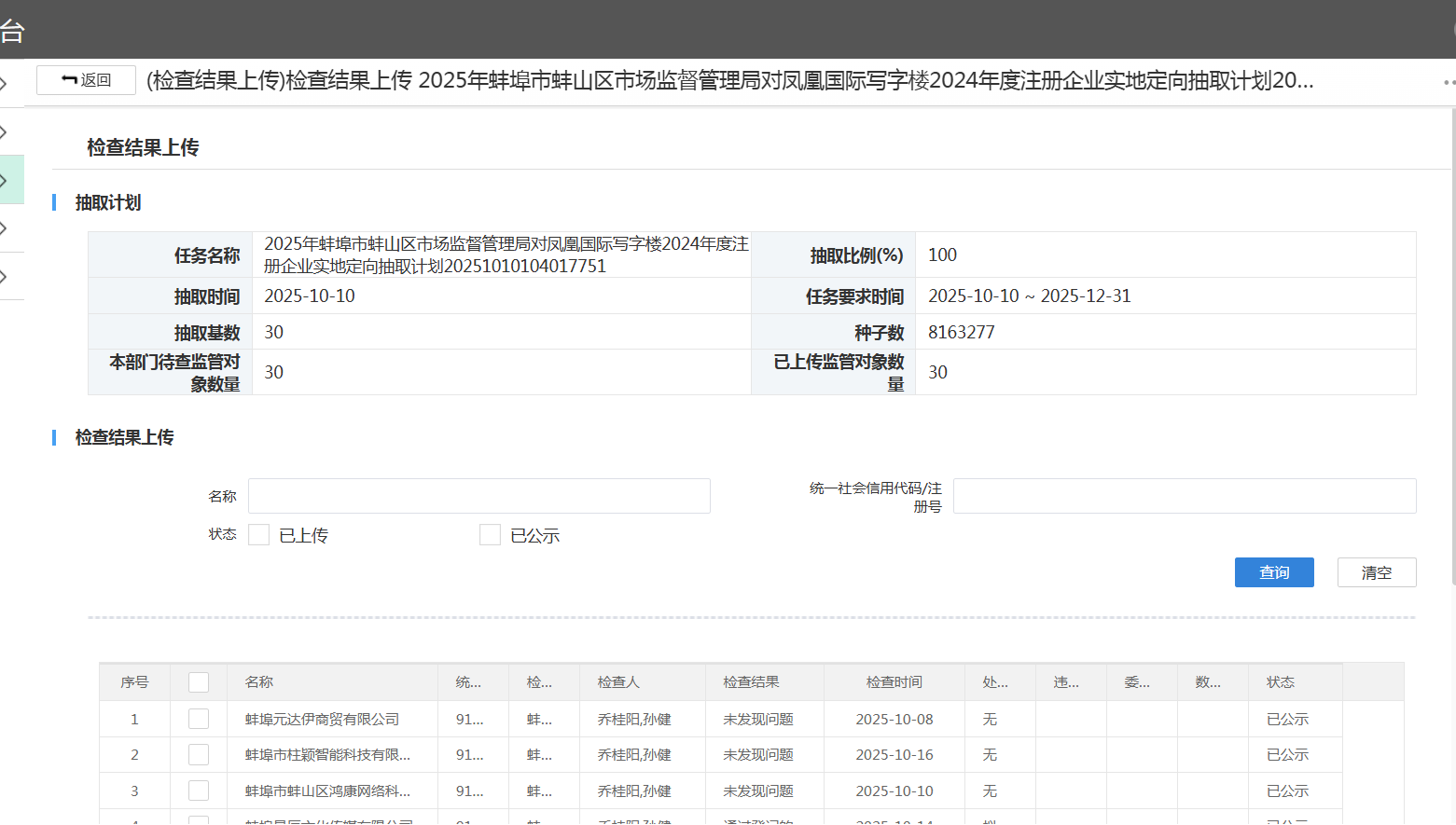 2025年蚌山区市场监管局“双随机、一公开”检查结果