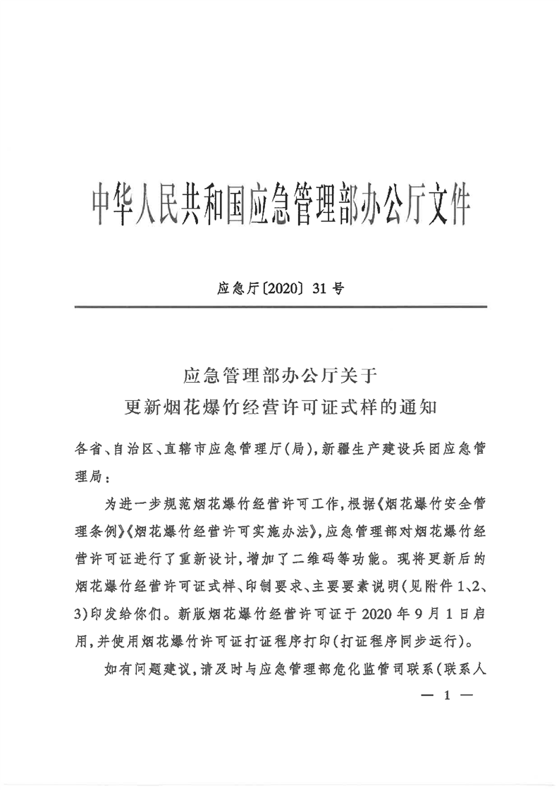 应急管理部办公厅关于更新烟花爆竹经营许可证式样的通知.pdf