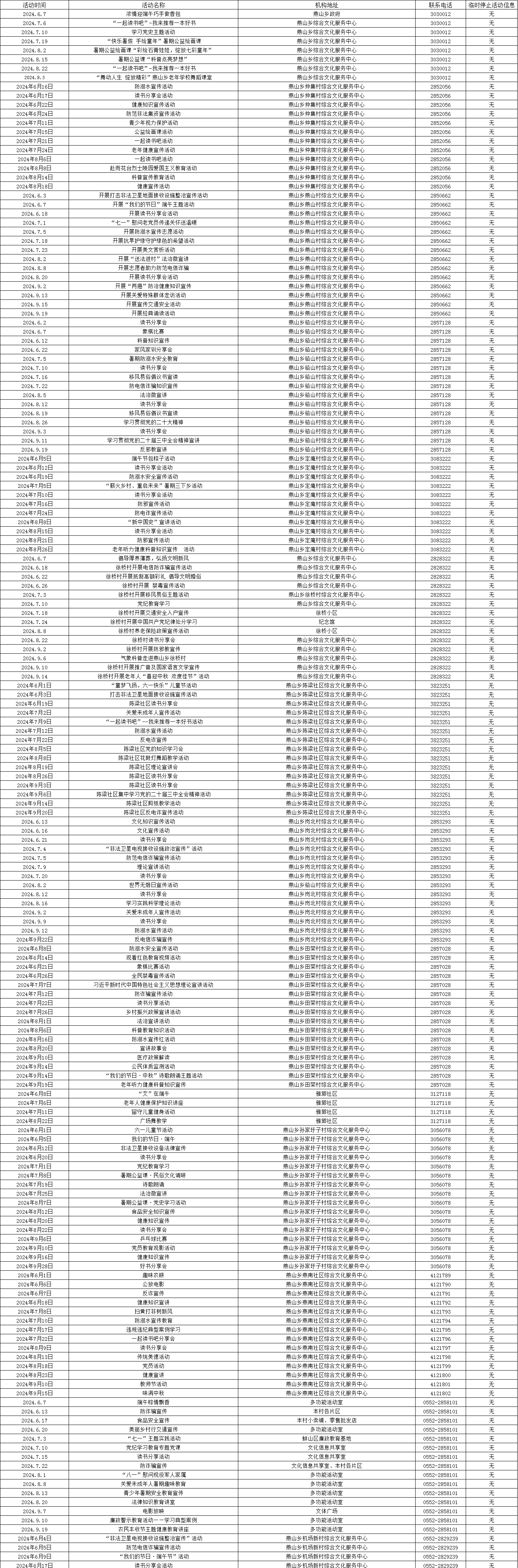 燕山乡2024年6-9月文化活动 |